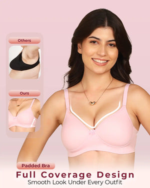 Invisi-Soft Bonded Breathable Cotton Full Coverage Padded Bra (KB-1013-PINK) | All Shades (8)