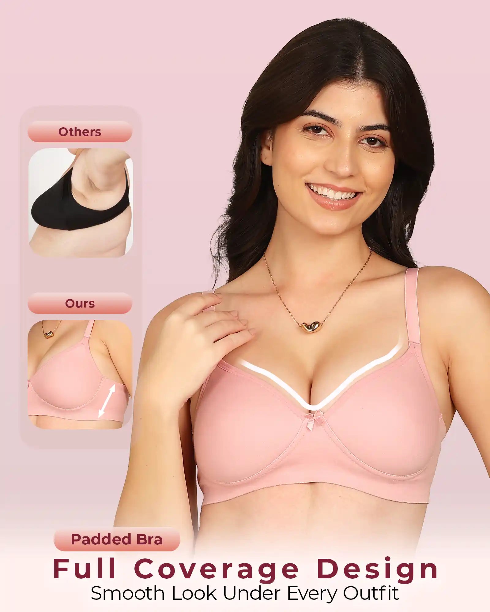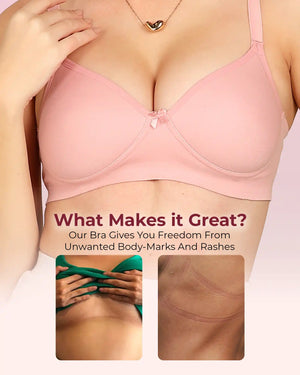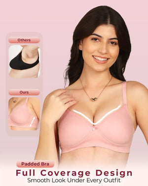 Meet the Invisi-Soft Bonded Breathable Cotton Full Coverage Padded Bra — your everyday essential designed for unmatched comfort and a flawlessly smooth look. Built using advanced bonded technology, this stitch-free style eliminates seams, bulk and irritation, giving you a second-skin fit that stays invisible under t-shirts and fitted outfits. The breathable cotton fabric keeps you fresh all day, while the full-coverage padded cups offer gentle lift and natural shaping.