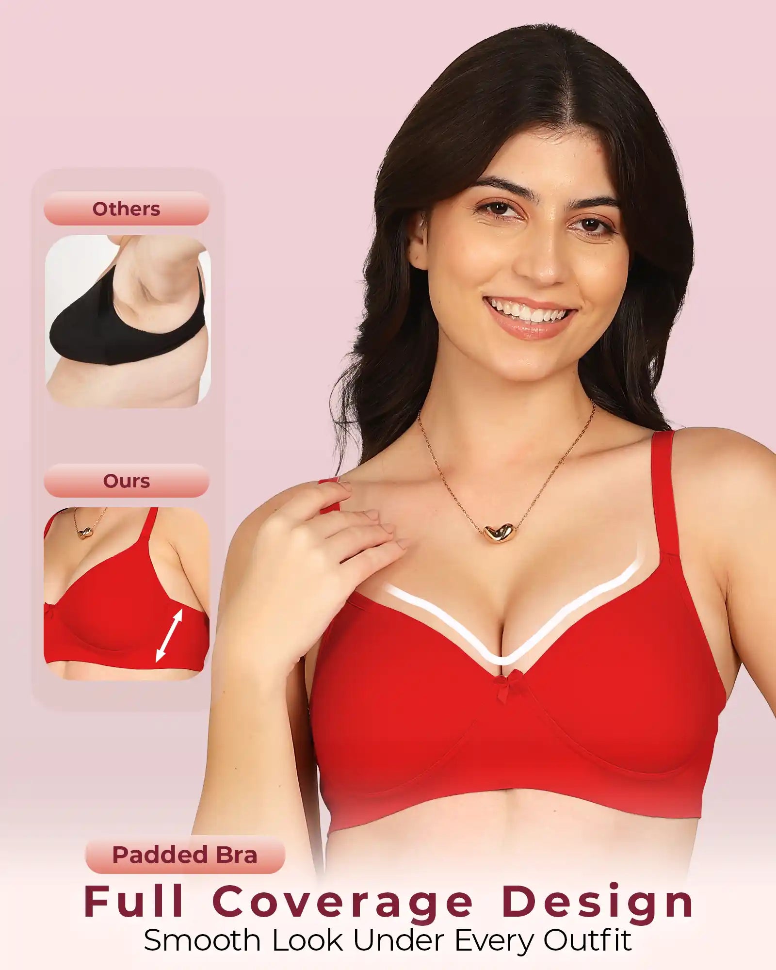 Meet the Invisi-Soft Bonded Breathable Cotton Full Coverage Padded Bra — your everyday essential designed for unmatched comfort and a flawlessly smooth look. Built using advanced bonded technology, this stitch-free style eliminates seams, bulk and irritation, giving you a second-skin fit that stays invisible under t-shirts and fitted outfits. The breathable cotton fabric keeps you fresh all day, while the full-coverage padded cups offer gentle lift and natural shaping.
