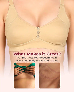 Elastic-Free Bottom Band: The underband is designed without harsh elastic so there’s no pinching, no tight body marks and no rashes—just soft, comfortable support around your ribcage.