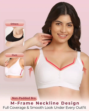 Invisi-Soft Bonded Breathable Cotton Plus Size M-Frame Minimiser Non-Padded Bra (KB-405-WHITE)