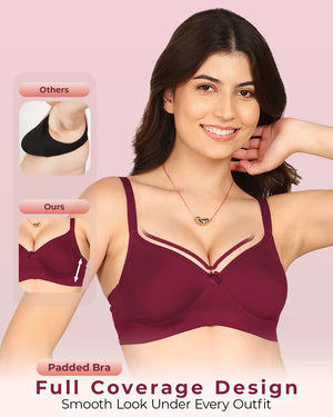 Meet the Invisi-Soft Bonded Breathable Cotton Full Coverage Padded Bra — your everyday essential designed for unmatched comfort and a flawlessly smooth look. Built using advanced bonded technology, this stitch-free style eliminates seams, bulk and irritation, giving you a second-skin fit that stays invisible under t-shirts and fitted outfits. The breathable cotton fabric keeps you fresh all day, while the full-coverage padded cups offer gentle lift and natural shaping.