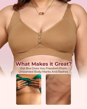 Elastic-Free Bottom Band: The underband is designed without harsh elastic so there’s no pinching, no tight body marks and no rashes—just soft, comfortable support around your ribcage.