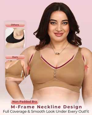 Invisi-Soft Bonded Breathable Cotton Plus Size M-Frame Minimiser Non-Padded Bra (KB-405-FAWN) | All Shades (7)
