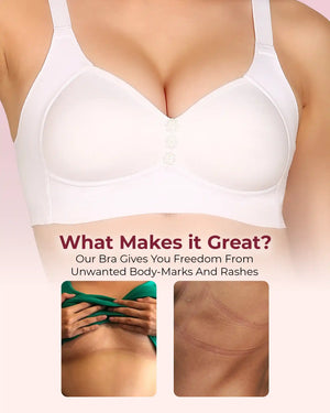 Elastic-Free Bottom Band: The bottom band is crafted without traditional elastic to prevent pinching, rashes, or body marks—just soft and irritation-free support.