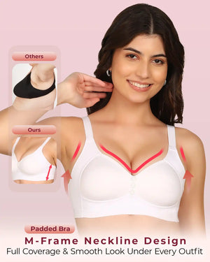 Invisi-Soft Bonded Breathable Cotton Plus Size M-Frame Minimiser Padded Bra (KB-408-WHITE)